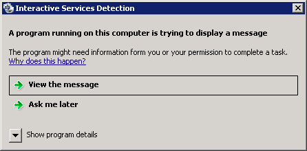 ![]() Note that if you close SpamFilter's service window using the "X" in the upper right corner of the window, this will prevent the "Interactive Services dialog detection" dialog from appearing ever again, and thus there appears to be no way of displaying the GUI (SpamFilter will still run in the background). To bring it back you can either stop/restart SpamFilter, or, more simply, just restart the "Interactive Services Detection" Windows' service. As soon as this service is restarted (doing so has no impact on anything else), you will be again prompted to display SpamFilter's GUI again. |